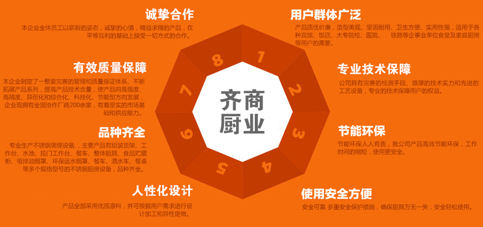 山東省博興縣齊商廚業(yè)有限公司是現(xiàn)代化的不銹鋼廚房設備專業(yè)企業(yè),具有完善的檢測手段、雄厚的技術實力和精湛的工藝設備及遍布各地的銷售網(wǎng)絡,產(chǎn)品全部采用優(yōu)質原...